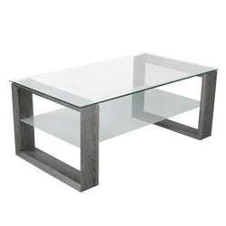 - Caleb Rectangular Glass Top Coffee Table with Shelf in Black