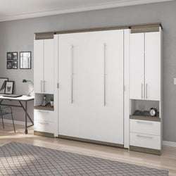 - Orion 98"W Full Murphy Wall Bed with 2 Storage Cabinets and Pull-Out Shelves - Available in 2 Colours