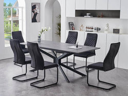 - Camrose 7 Piece Sintered Stone Armani Grey Marble Top with Carbon Black Steel Base Dining Room Furniture Set