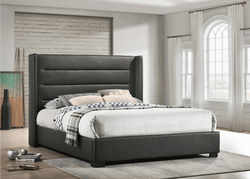 - Peterborough Horizontal Tufted Fabric Wingback Platform Bed in Grey - Available in 2 Sizes