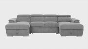 Bel Air Modular U-Shaped Sleeper Sectional Sofa with Storage Chaises in Thora Stone