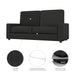 The seat depth is 23.6” and its height is 17.4”. The arm height is 4.7” above the seat. The arm width is 6” in. The interior width of each seat is 33”.