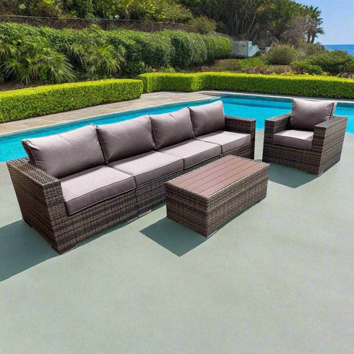 4 Piece Outdoor Patio Wicker and Metal Loveseat Conversation Set - Available in 2 Colours