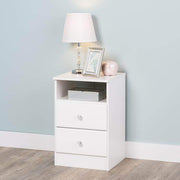 Have all you need close at hand with the Astrid 2-Drawer Nightstand. Profiled drawer fronts and solid wood knobs help provide a timeless look. Use on its own or pair it with other matching pieces from the Astrid Collection. The two drawers discreetly tuck away everything you want out of sight, while the open shelf is perfect for stashing your favourite books, blankets or knickknacks.