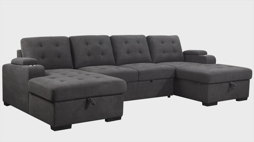 Lancaster 125" Wide U-Shaped Sleeper Sectional Sofa Bed with Storage Chaises in Belfast Charcoal