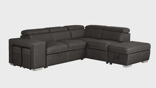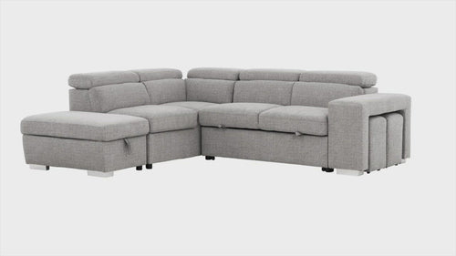 Pasadena 104.5" Wide Large Sleeper Sectional Sofa Bed with Storage Ottoman and 2 Stools - Available in 3 Colours